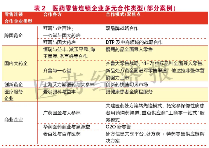 國內(nèi)制藥企業(yè)、創(chuàng)新藥企、醫(yī)療服務(wù)企業(yè)等或“官宣”處方藥新零售戰(zhàn)略,或已開啟與零售連鎖合作新進(jìn)程(如表2所示)。